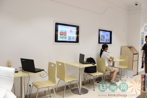 。ㄌ旌“微喔”的掃碼購(gòu)電子屏,顧客也可在店內(nèi)使用WIFI)