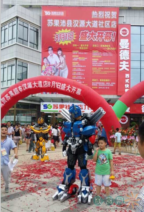 聯(lián)商網(wǎng)消息:8月1日,蘇果徐州沛縣漢源大道社區(qū)店今日開(kāi)業(yè),該店面積3000多平方,經(jīng)營(yíng)品種1.5萬(wàn)個(gè),是沛縣第22家直營(yíng)店。開(kāi)業(yè)首日還有變形金剛助陣,特惠活動(dòng)和抽獎(jiǎng)引爆人氣。