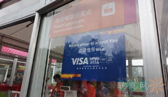 圖三:為便于外賓消費,售賣點提供VISA卡刷卡服務。國內觀眾可刷銀聯(lián)卡或者支付人民幣現(xiàn)金。此外,刷工商銀行信用卡刷卡消費可享5折優(yōu)惠。