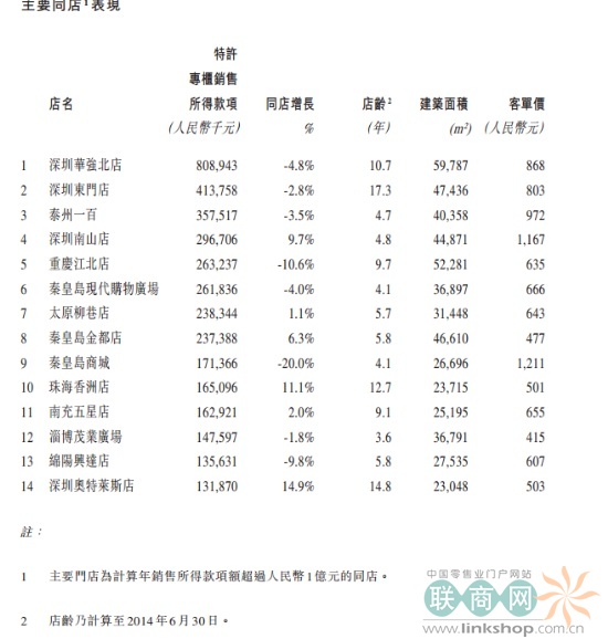 聯(lián)商網(wǎng)消息:8月28日,茂業(yè)國際控股有限公司2014年中期業(yè)績報(bào)告顯示,上半年該公司銷售所得款項(xiàng)總額為56.18億元,較去年同期下降3.2%,其中特許專柜銷售同店下降2.0%。