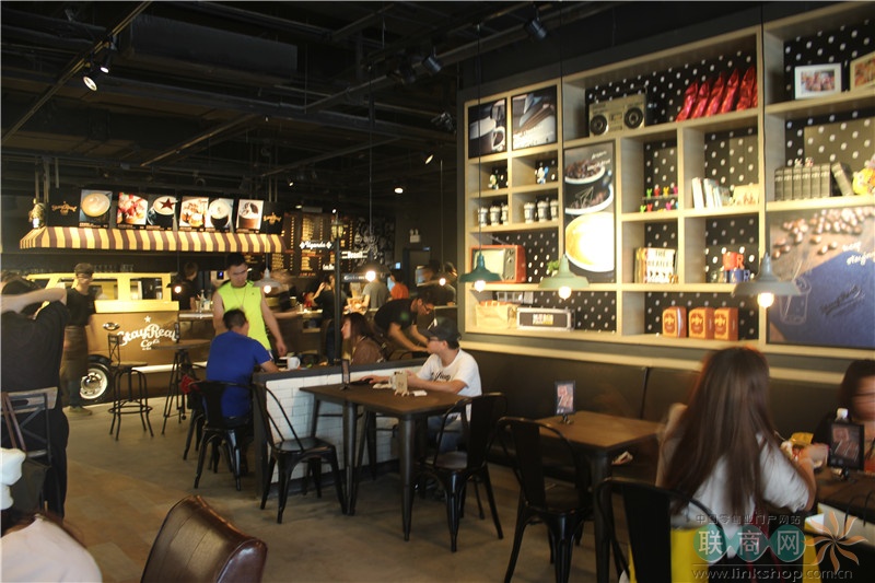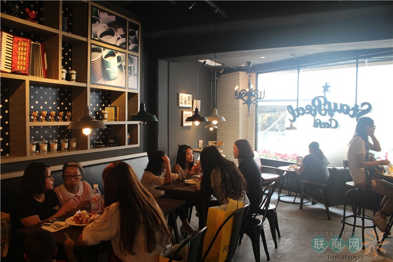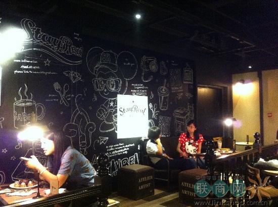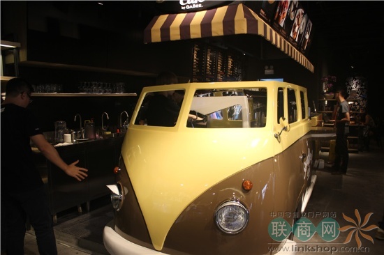 據(jù)StayReal Café湖濱銀泰店店長(zhǎng)介紹,該店?duì)I業(yè)面積約為200平方米,座位約有80個(gè),雖然今天是工作日,但聯(lián)商網(wǎng)記者在現(xiàn)場(chǎng)看到幾乎沒(méi)有空位。除了因?yàn)槌迸芐tayReal自身攜帶的超高人氣外,該店的復(fù)古主題也是現(xiàn)在年輕人的大愛(ài)。柜臺(tái)是由一節(jié)被稱為“夢(mèng)想巴士”的火車裝扮而成,黃色和咖啡色的搭配完美地融入到了整個(gè)復(fù)古的主題。店里的桌椅、地板以及一些擺設(shè)都加入了復(fù)古的元素,使整個(gè)環(huán)境看上去非常地放松、安逸。