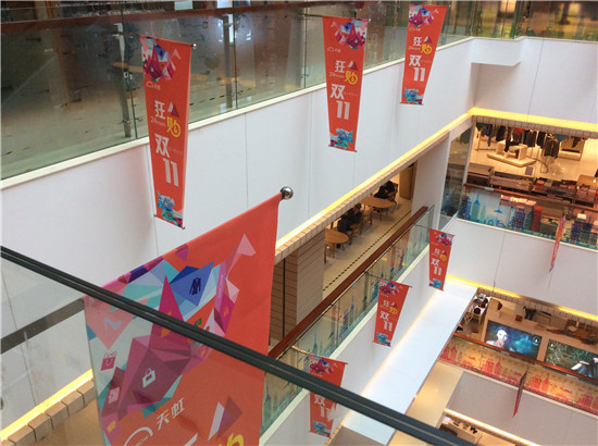 聯(lián)商網(wǎng)消息:在杭州五福天虹購物中心A座,消費(fèi)者買到了12元的羊毛衫。今天是中國購物節(jié)的第一天,聯(lián)商網(wǎng)記者在天虹購物中心A座看到,各大專柜都有不同力度的促銷。在B座,天虹與淘點(diǎn)點(diǎn)合作,消費(fèi)者不僅可以購買代金券在天虹的餐飲店使用,當(dāng)天支付滿2800元還會(huì)有自行車贈(zèng)送。在天虹購物中心隨處還可以看到掃碼辦微卡、微信購物、微信支付等活動(dòng)推廣。截止記者發(fā)稿,天虹方面沒有對(duì)中國購物節(jié)活動(dòng)的客流和銷售情況做任何回應(yīng),預(yù)計(jì)明天會(huì)有數(shù)據(jù)發(fā)布。