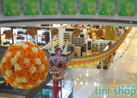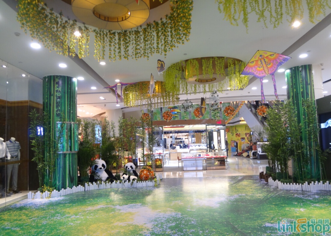 這是三月份“春色滿園”主題,不論是大堂、中庭、通道還是柜臺,到處看到鳥語花香、蝴蝶飛舞的場景,給顧客帶來新的視覺享受,感受到春的魅力。