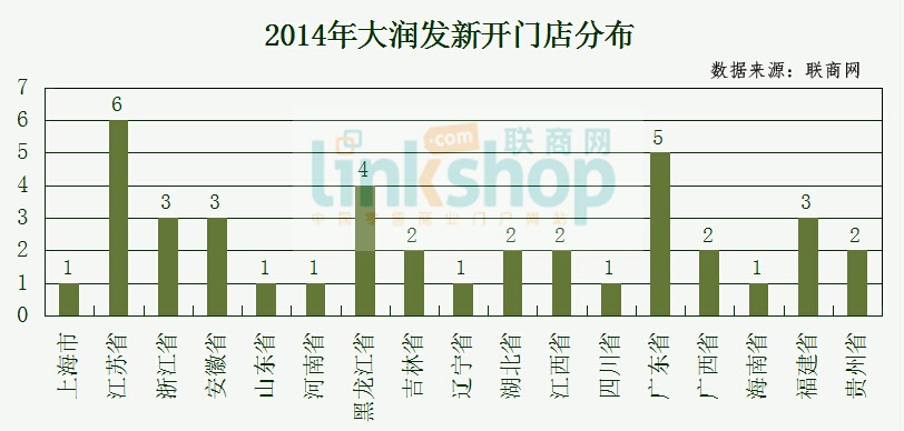 聯(lián)商網(wǎng)統(tǒng)計數(shù)據(jù)顯示,截止至2014年12月31日,大潤發(fā)全年新開門店40家門店,較去年同期減少開5家,在華門店總數(shù)達304家。