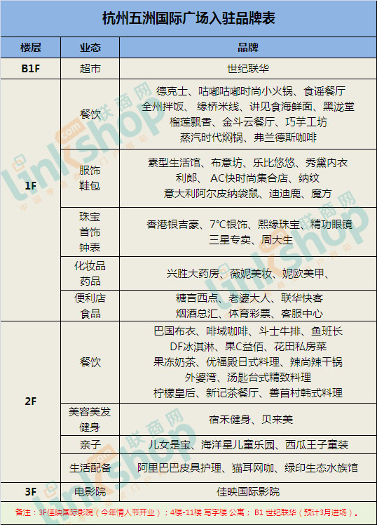 以下是聯(lián)商網(wǎng)獨家整理的杭州五洲國際廣入駐品牌一覽: