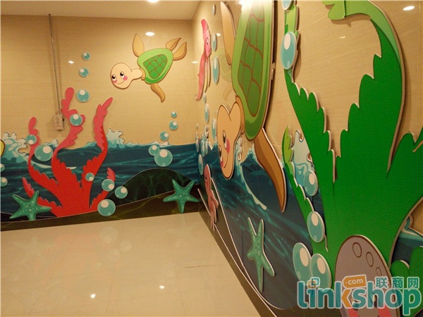 三樓則以兒童業(yè)態(tài)為主,匯聚了孩子王、檬檬樹、迪士尼、貝因美等品牌的母嬰店。為與樓層主題相適應(yīng),在三樓檬檬樹旁邊廁所的墻壁上,更是有海洋的貼圖,以此來吸引孩子的注意力。