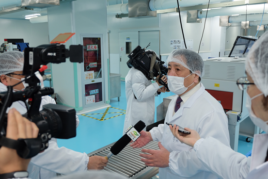 在鮮饌公司董事長(zhǎng)陳文光的引導(dǎo)下,大家進(jìn)入工廠車間進(jìn)行參觀。在進(jìn)口處,大家換上白色的工作服和膠鞋。戴上口罩和發(fā)套,經(jīng)過(guò)除塵、消毒等環(huán)節(jié)后進(jìn)入車間。