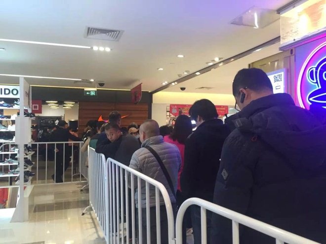 據(jù)聯(lián)商網(wǎng)記者了解,今天耐克全場第二件1.8折,一大早顧客就排起了長長的隊伍。