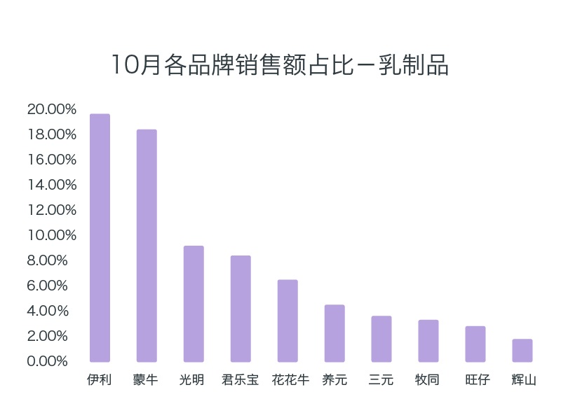 冬季來臨,購買大寶、百雀羚、郁美凈的河南消費(fèi)者逐漸增加,預(yù)測(cè)11月對(duì)比10月銷售額占比增幅較大;君樂寶銷售額占比較多,相比10月,占比增速仍高達(dá)10.76%。