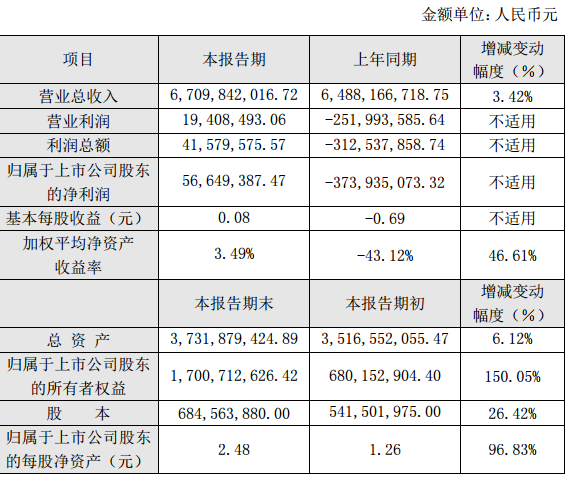 2016年上半年,公司實現營業(yè)收入33.95億元,同比增長1.80%,歸屬于上市公司股東的凈利潤4871.99萬元,同比增長304.63%。