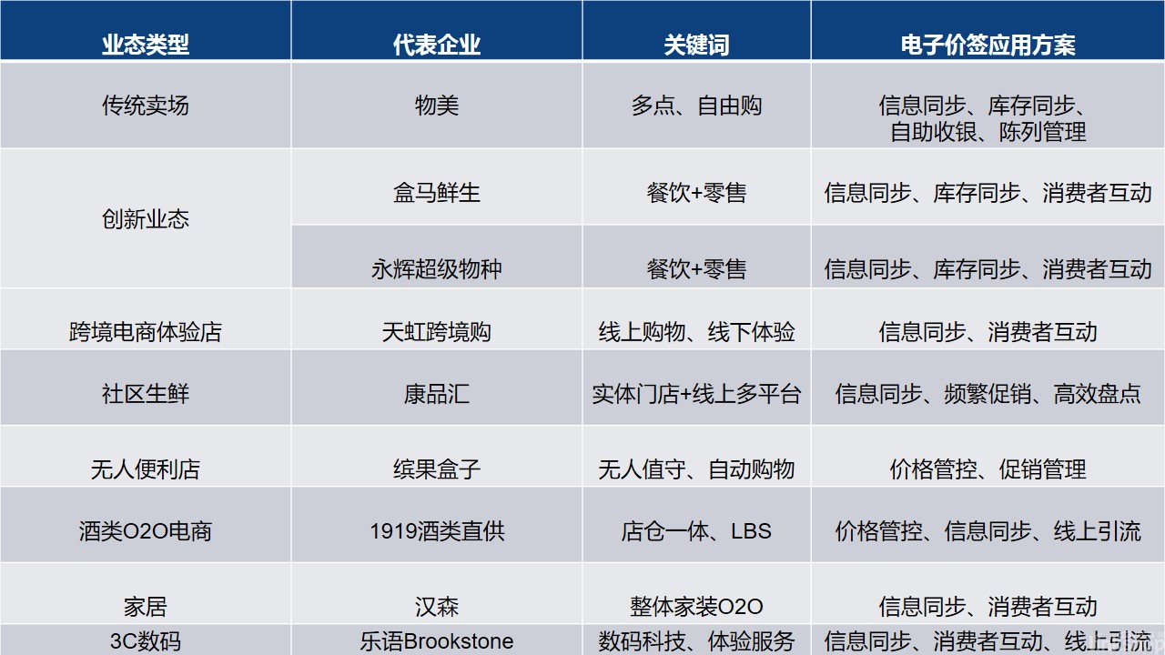 ▲電子價簽應(yīng)用業(yè)態(tài)一覽
