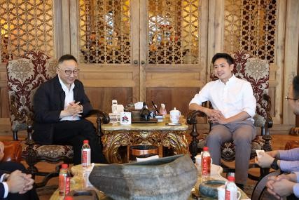 ▲9月27日,三胞集團董事長袁亞非(左一)與柔宇科技董事長兼CEO劉自鴻展開座談