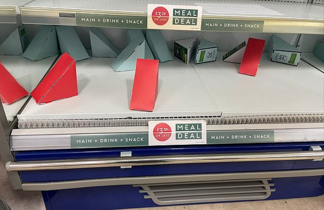 而據(jù)《每日郵報(bào)》報(bào)道,在倫敦南部的一個(gè)小鎮(zhèn)克里登的博姿零售商店里,商家甚至用紙糊的空三明治盒子填補(bǔ)貨架的虧空。