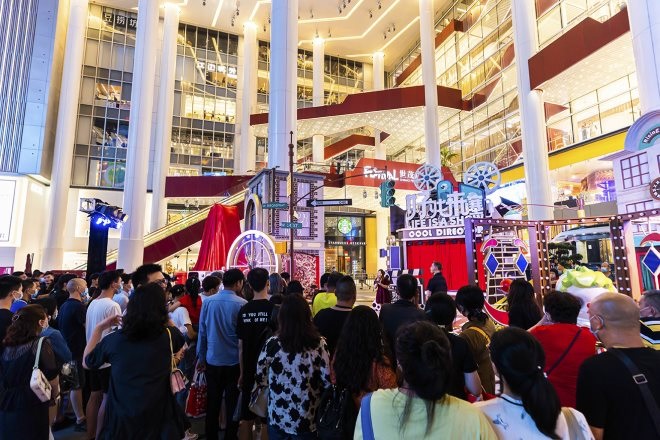 在緊抓首店經(jīng)濟之外,上海世茂廣場在IP資源及運營方面也亮點頗多。自開業(yè)以來已舉辦故宮博物院授權的上海首家文創(chuàng)快閃店、大英博物館“埃及萌神”全國首家快閃體驗店、全國首家大白兔冷飲快閃店、FARMER BOB&RICO聯(lián)名全國首展等;還與POPMART達成戰(zhàn)略合作,連續(xù)三年舉辦了不同人氣IP主題的全國首展,如最大規(guī)模MOLLY展、SKULLPANDA人生如戲系類首展等,廣受年輕客群喜愛。