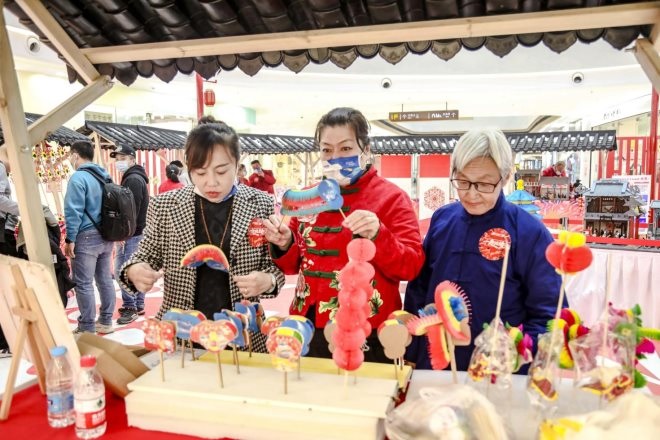 在啟動儀式同步開啟的非遺體驗(yàn)市集,面塑傳承人依托世界冠軍陳露的花滑經(jīng)典造型,捏出栩栩如生的面塑作品,剪紙藝術(shù)家?guī)ьI(lǐng)青少年體驗(yàn)者完成冰雪主題工藝作品……眾多跨圈聯(lián)動讓各年齡層客群能在萬達(dá)廣場獲得趣味生活的美好體驗(yàn)。