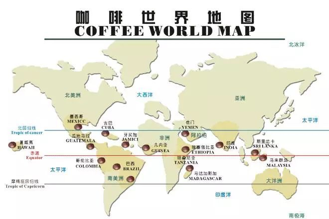 劉麗清提到的咖啡產(chǎn)區(qū),即適宜咖啡樹生長的地區(qū),位于赤道附近,是咖啡愛好者辨別咖啡風(fēng)味的重要依據(jù)之一。如非洲的埃塞俄比亞、坦桑尼亞,中南美洲的巴西、哥倫比亞、牙買加、危地馬拉、墨西哥、洪都拉斯、哥斯達(dá)黎加,東南亞的越南、印度尼西亞等,都是主要的咖啡產(chǎn)地。我國云南,同樣位于咖啡帶中。
