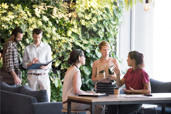 在項(xiàng)目建筑和辦公空間內(nèi)充分融合自然、綠色、可持續(xù)理念。設(shè)計(jì)團(tuán)隊(duì)運(yùn)用自然雅致的素材和紋理,配合光影與細(xì)節(jié)搭配,突破傳統(tǒng)辦公方程式的框架束縛,與自然相融。從地面到空中,徐匯萬科中心將自在的社交空間不斷拓展。不論是寫字樓中間層規(guī)劃的辦公社交空間還是高層規(guī)劃的空中商務(wù)花園,均是頗具亮點(diǎn)的多元社交空間,拉近人與人之間的社交本真。