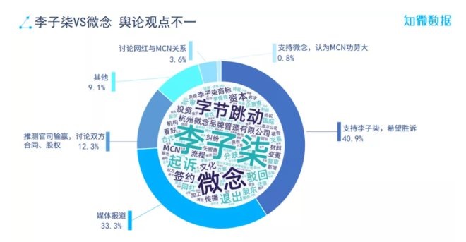 據(jù)知微數(shù)據(jù)顯示,聲討杭州微念MCN機構的言論有很多,李子柒方面明顯占輿論上風。其中,超40%的網友表示力挺李子柒,認為李子柒遭遇不公平對待,希望其能夠勝訴;僅0.8%網友不認可李子柒做法,認為沒有MCN培養(yǎng)也不會有李子柒。