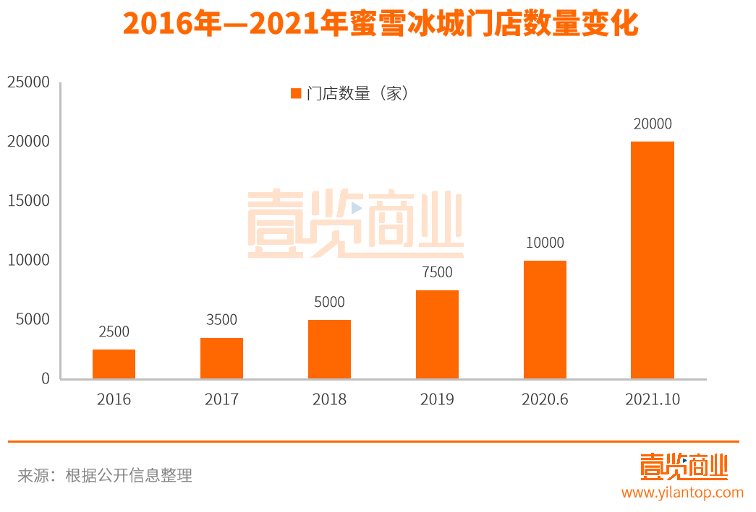 我們來(lái)看一看蜜雪冰城門(mén)店的擴(kuò)張速度: