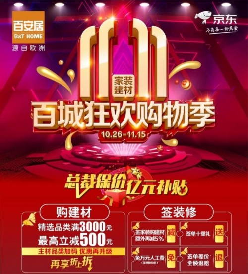 百安居攜手京東平臺(tái)啟動(dòng)“雙十一百安居狂歡購物季”