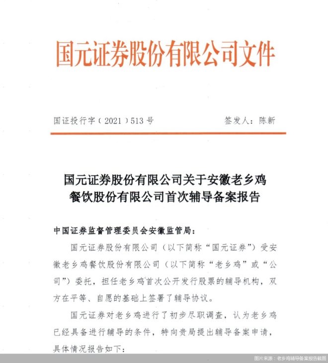 老鄉(xiāng)雞的首次輔導(dǎo)備案報(bào)告顯示,老鄉(xiāng)雞和國元證券于2021年9月簽訂了上市輔導(dǎo)協(xié)議,計(jì)劃籌備在深交所主板上市。對此,北京商報(bào)記者聯(lián)系到了老鄉(xiāng)雞客服中心,向其工作人員證實(shí)了老鄉(xiāng)雞正準(zhǔn)備上市的消息。