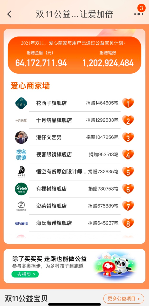 天貓雙11“公益寶貝”捐贈(zèng)達(dá)12億筆 商業(yè)與公益同頻共振