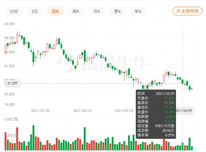 對于小米三季度成績的下滑,資本市場很快給出了反應(yīng)。10月29日報(bào)告發(fā)布當(dāng)天,小米在港股的表現(xiàn)呈下滑趨勢。據(jù)富途牛牛數(shù)據(jù)顯示,小米當(dāng)天股價(jià)最低跌到了21.5港元/股。而對比今年1月份,小米股價(jià)最高時(shí)達(dá)到了35.9港元/股,如今下跌近40%。截止發(fā)稿,小米股價(jià)降至20.75港元,市值為5207.31億港元。