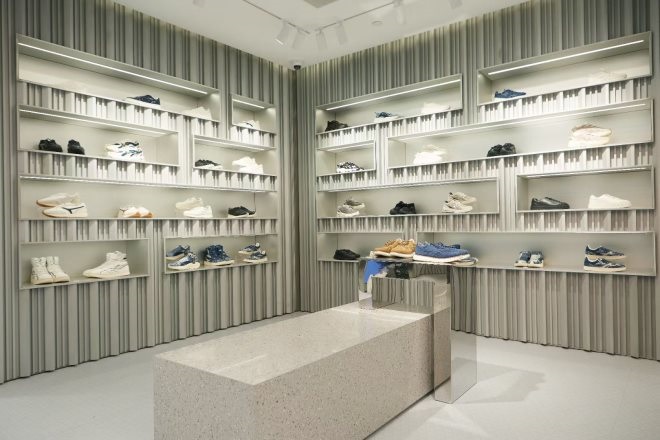 據(jù)悉,LI-NING1990線下店鋪空間設(shè)計(jì),以中國(guó)傳統(tǒng)“格”的概念貫穿,簡(jiǎn)約的色彩和線條勾勒店鋪空間,詮釋“以簡(jiǎn)馭繁”的風(fēng)尚真諦。天花板采用整體發(fā)光格形式,融合中國(guó)建筑元素,收銀區(qū)以天地墻整幅屏幕設(shè)計(jì),極具視覺效果。