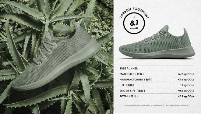 你很少能看到這樣奇怪的產(chǎn)品詳情頁——Allbirds在自己的中國官網(wǎng)上描述,他們的產(chǎn)品原料都來自于新西蘭羊毛、南非桉樹和巴西甘蔗,鞋帶的原材料則是塑料瓶:“一個回收的塑料瓶可以轉(zhuǎn)化為一雙Allbirds鞋的鞋帶!卑b盒也走環(huán)保路線,90%都是由回收紙板制作。每一款商品上都會標(biāo)注數(shù)字,“+xxkg CO2e”——這串神秘的像代碼一樣的數(shù)字,指代的是碳排放量,被官方稱為“碳足跡”。