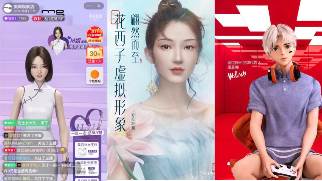 從左到右:美即、花西子、屈臣氏的虛擬代言人