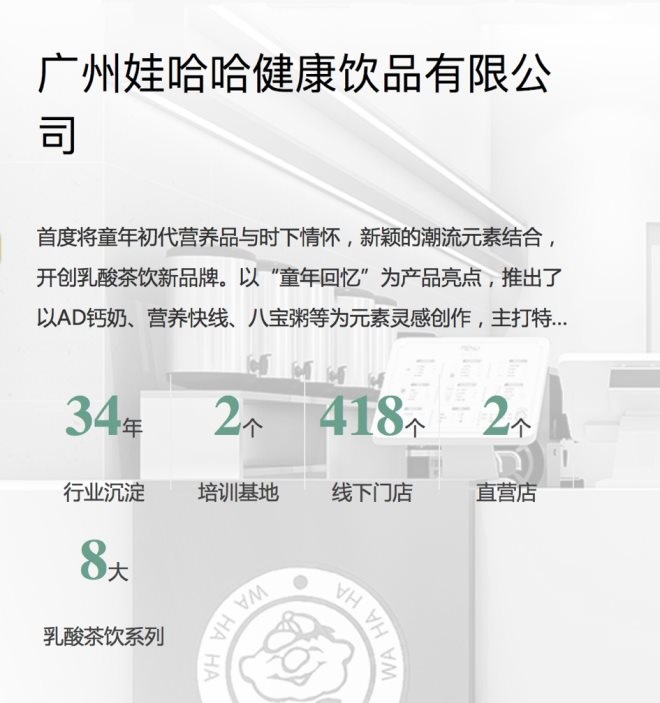難得一見的火爆現(xiàn)象以及宗總的坐鎮(zhèn),吸引了不少江浙地區(qū)的加盟商,娃哈哈奶茶店開始迅速擴(kuò)張。截至目前,“娃哈哈奶茶”官方微信提供的唯一官網(wǎng)頁面顯示,其在全國一共開出了418家奶茶店。