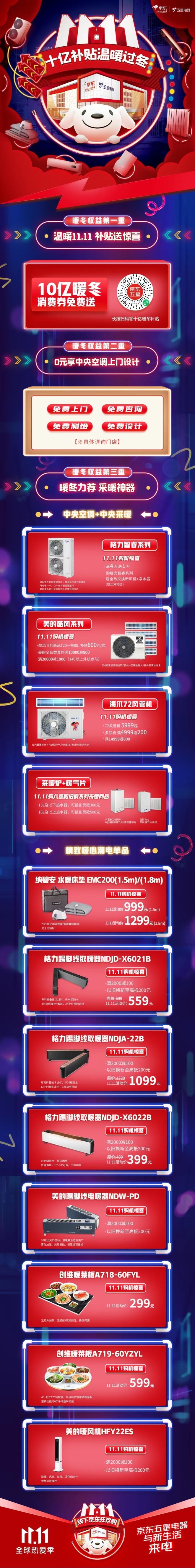 除了取暖生活類家電外,中央空調和中央采暖也成為11.11期間消費者鐘愛的取暖選擇,京東五星電器推出暖冬力薦,格力智睿系列滿4萬送1萬,送全熱交換新風機加凈水器(江蘇地區(qū));美的酷風系列Ⅱ代新品120一拖四,補貼600元/套,美的全品類套購滿1萬減900元,滿2萬減1900元;海爾72風管機5999元起,多聯(lián)機滿4999元返200元,滿14999元返800元……還可以0元享中央空調上門、咨詢、測繪及設計服務,具體詳詢門店。