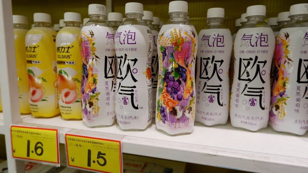 元氣森林系的清泉出山,也是好特賣貨架上的常見品牌。除此之外,零售君還在包括亞運村、富力廣場等在內(nèi)的多家店鋪看到了十多種氣泡水,有夭氣、歐氣、燃力士、盼盼、理想天氣和俞文清等,價格區(qū)間大多在1至2元,相較動輒5元以上的原價,足夠便宜。