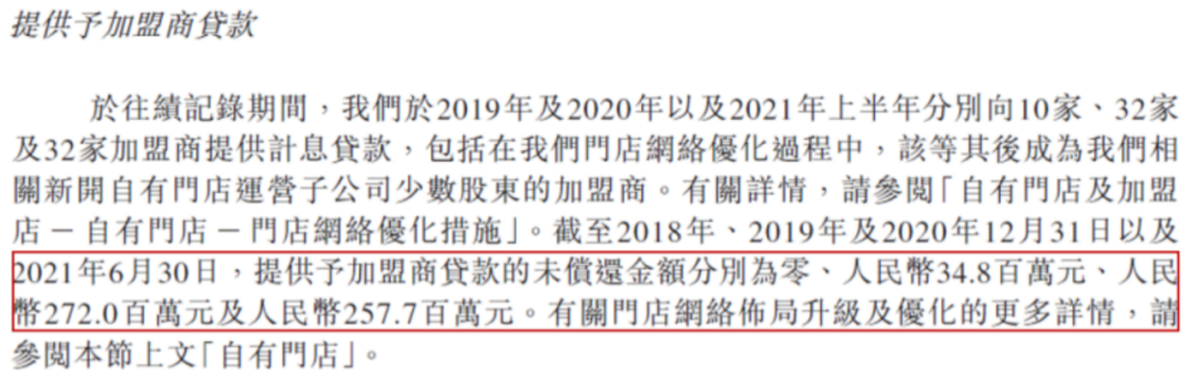 截止2021年6月底,KK集團向加盟商提供的貸款及預(yù)付款累計高達5.6億元,按照352家加盟店計算,平均單個加盟店借款接近160萬。