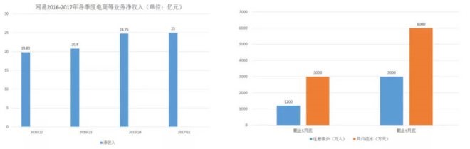 圖:網(wǎng)易首年各季度電商等業(yè)務凈收入和2016年嚴選用戶和月流水(來源:聯(lián)商網(wǎng))