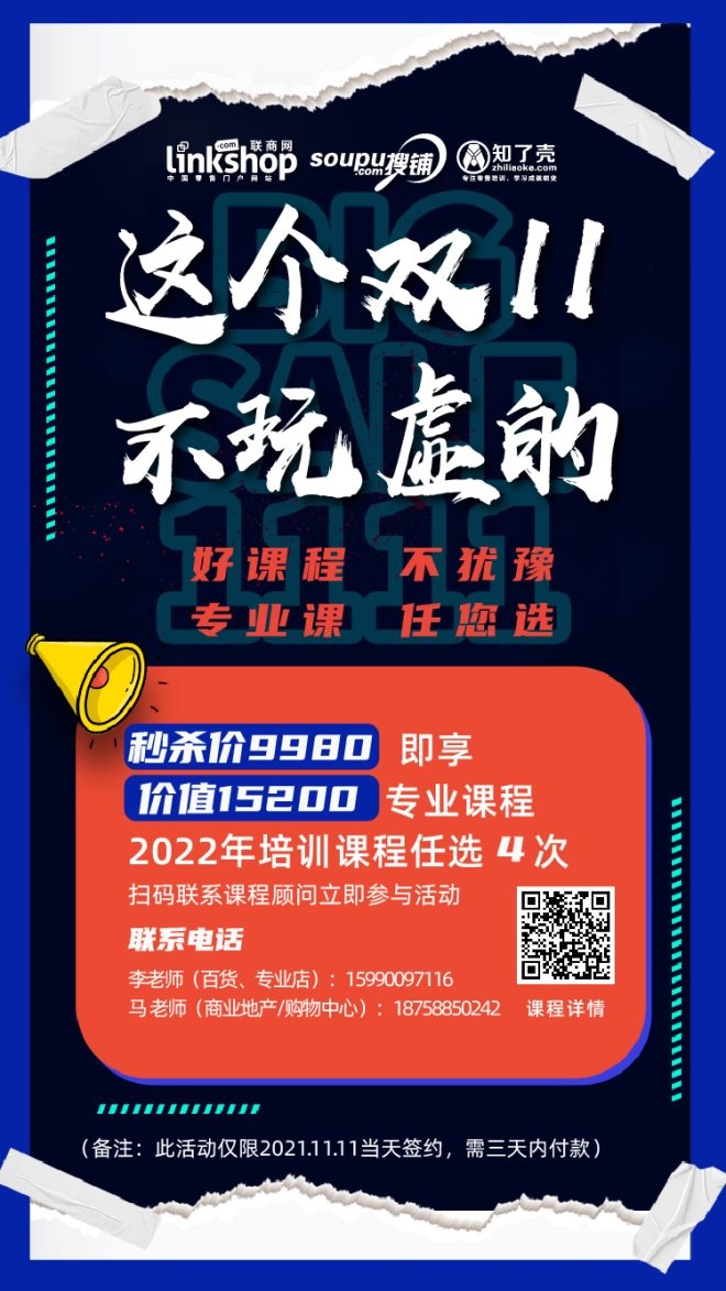 為此,《聯(lián)商網(wǎng)》特上線2022年專業(yè)培訓(xùn)課程雙11搶購活動(dòng),為大家?guī)砀嘀Α?/p>