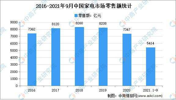 數(shù)據(jù)顯示,中國家電市場2021年1~3季度零售額僅為5416億,較受疫情影響的2020年同期提升7.7%,但相較于2019年同期降幅依然明顯,下降幅度達8.7%。