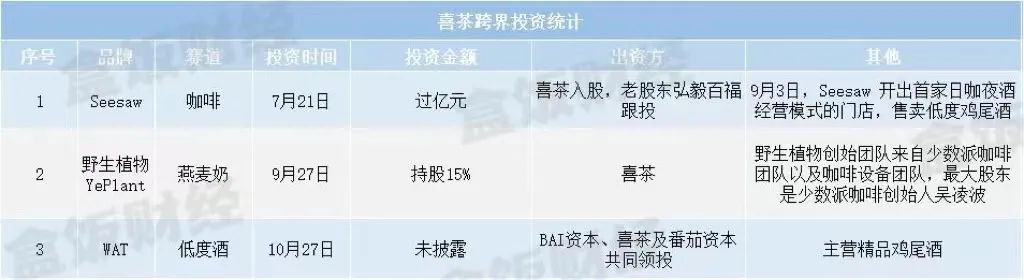 近3個(gè)月發(fā)生4筆對(duì)外投資,時(shí)間間隔從兩個(gè)月到一周,喜茶在投資這件事上,出手逐漸密集。