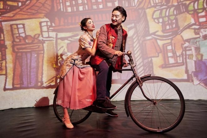 多媒體、服裝、音樂和美食等等細節(jié)都在向觀眾們傳遞著每一幕內(nèi)容的信息,熱氣球從格林威治出發(fā),途徑亞洲,俄羅斯,巴西,最后飛向外太空。“探險隊長”們的神秘“火星語”在提醒著“探險家”:每一處都是繪本中的童話世界,而并非寫實的再現(xiàn)。以本輪演出新增的上海幕為例,巨幕中的東方明珠宣告這里是上海,但老式自行車的叮鈴聲又讓人仿佛回到過去,美發(fā)廳的霓虹燈還在閃爍,大光明電影院門口有打麻將的夫人…演員們領(lǐng)著觀眾丟沙包、跳房子,在弄堂里找回遺失的童趣。這一幕仿佛在說,上海不僅是別人口中的國際大都市,更是鄰里百姓的有溫度的家。