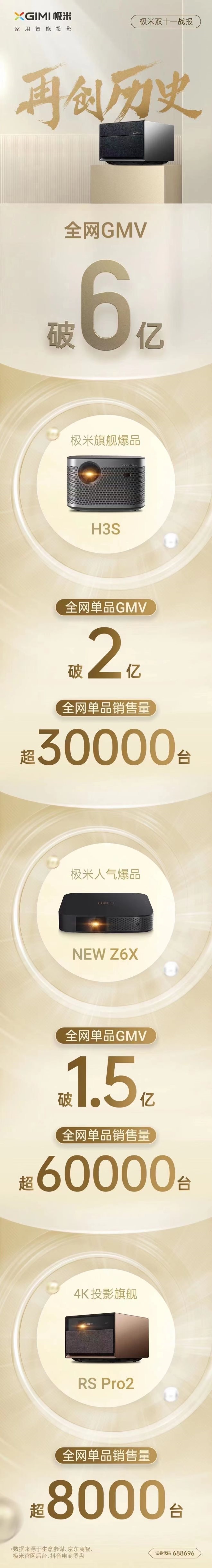 極米雙11戰(zhàn)報(bào):全網(wǎng)GMV破6億 創(chuàng)造歷史新高