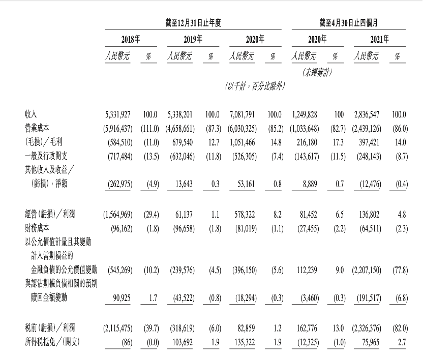 招股書顯示,2018-2020年安能物流的營收分別為53.32億元、53.38億元、70.82億元;凈利潤分別為-21.16億元、-2.15億元、2.18億元。