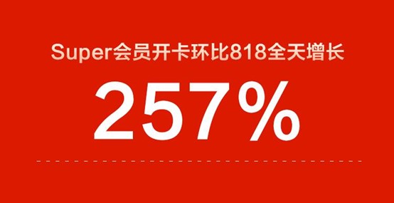 雙十一熱潮也順勢帶動了平臺會員用戶大幅增長,截至12點(diǎn),蘇寧易購Super會員開卡用戶數(shù)環(huán)比818全天增長257%。