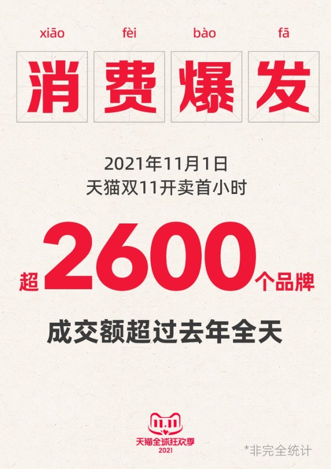 在現(xiàn)場,吹雪也透露,今年將有品牌首次在天貓雙11期間銷售額超過100億。
