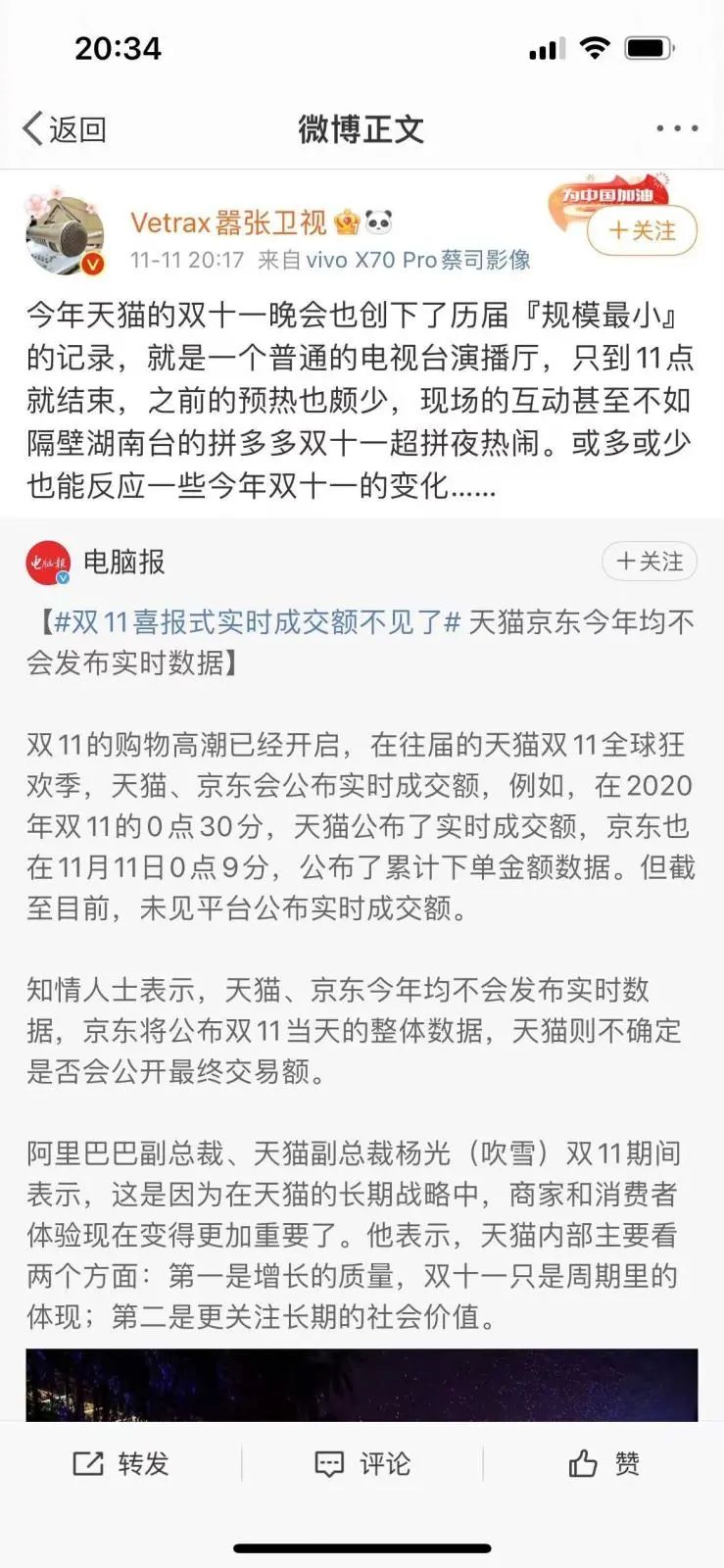 不過,與往年相比,今年雙11的喜報(bào)形式顯得格外“冷靜”,天貓雙十一晚會(huì)規(guī)模被吐槽歷年“最小”。即便是雙11已臨近尾聲,淘寶也未公布實(shí)時(shí)成交額。