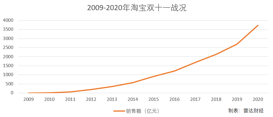 起初,這個(gè)數(shù)字的成長速度非常迅猛。2009年,首屆雙11就在短短一天內(nèi)創(chuàng)造了5000萬的銷售額,而到了2010年,銷售額已經(jīng)暴漲至9.36億元。
