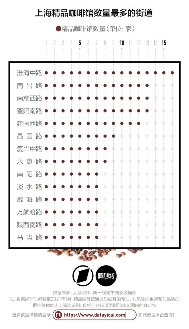 在淮海中路從頭走到尾,你能看到49家咖啡館,南京西路則有41家。