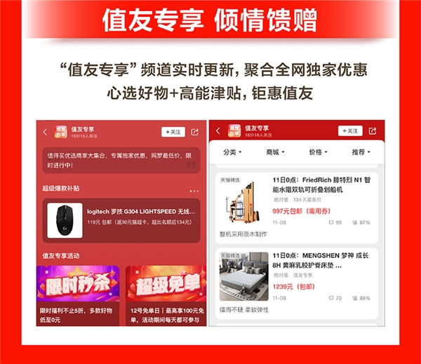 “值友專享”作為什么值得買回饋用戶的專門欄目,本次大促期間也吸引了數百家品牌的助力參與,值友不僅可以在此看到海量優(yōu)惠信息,還可以領取站內專享優(yōu)惠券和紅包,享受品牌獨家優(yōu)惠價。