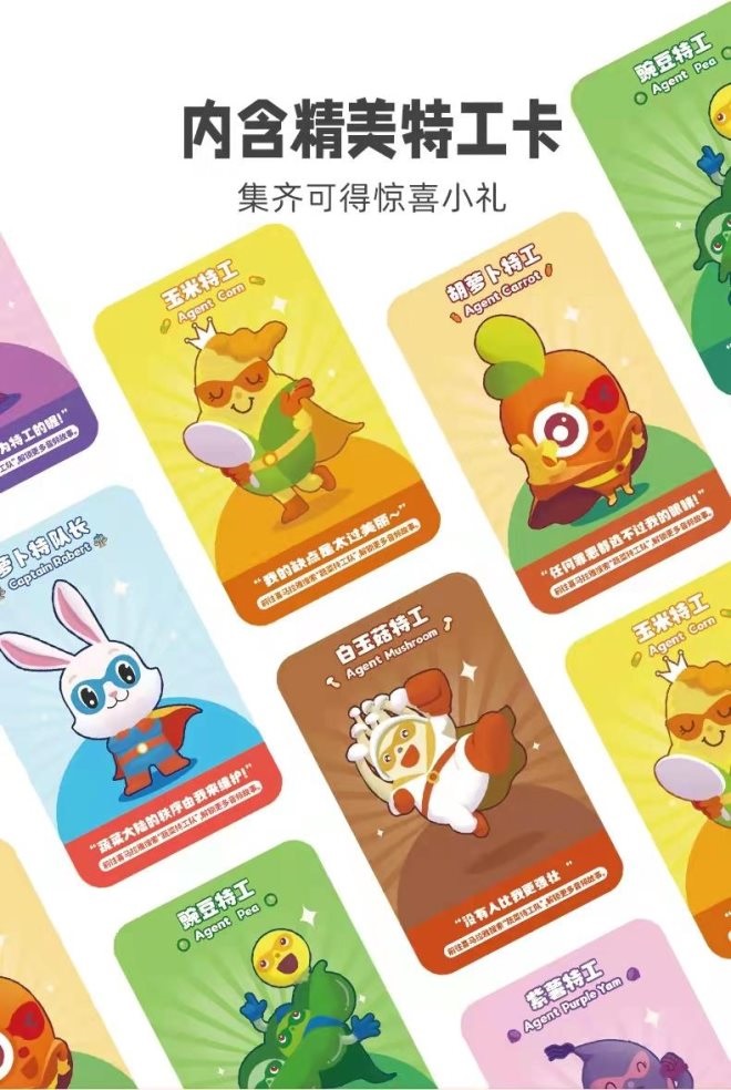 此外,「蔬格樂」在很多細節(jié)上都在努力抓住孩子的心:比如包裝袋頂上的兔耳朵,每個包裝盒背面的小漫畫,以及包裝里的盲盒特工卡(“神秘”的特工檔案),這些都起到了增加與小朋友的互動鏈接,進而豐富品牌人格的作用。