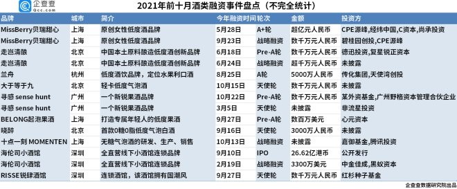 1、低度酒令資本“上頭”:2021年已有8個低度酒品牌獲得融資