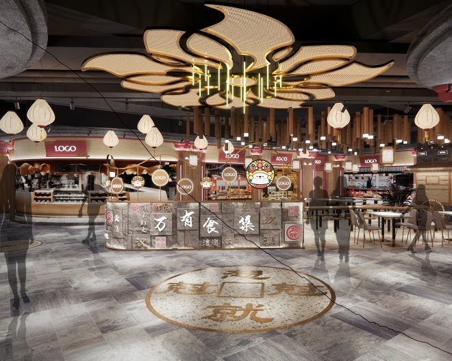 負(fù)一層的「萬(wàn)有食集」以餐飲業(yè)態(tài)為主,融入中國(guó)漢文化的獨(dú)有資源,將時(shí)尚的國(guó)潮文化與最接地氣的煙火氣完美結(jié)合,打造出一條既囊括了當(dāng)?shù)靥厣〕、又涵蓋了國(guó)內(nèi)外知名人氣餐飲品牌的沉浸式漢文化美食主題空間。